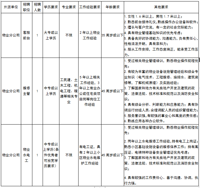 清遠市弘力勞務(wù)有限公司以“專注人才服務(wù),專業(yè)服務(wù)人才”為企業(yè)宗旨,力求為企業(yè)及求職者提供專業(yè)、高效的人才服務(wù)平臺,F(xiàn)因公司業(yè)務(wù)發(fā)展需要,按照公開、平等、競爭、擇優(yōu)的原則誠聘客服前臺、維修主管和物業(yè)水電工各一名外派到清遠市德晟公共資源管理有限公司物業(yè)管理服務(wù)分公司。