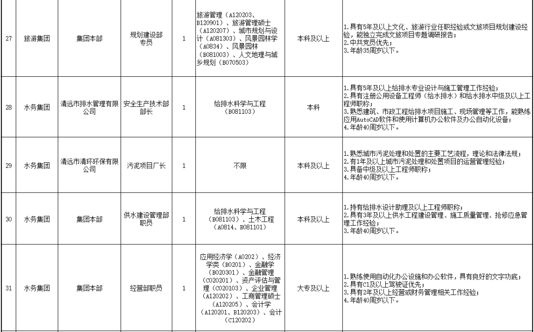 詳見清遠(yuǎn)市市屬國有企業(yè)2022年公開招聘工作人員崗位表。