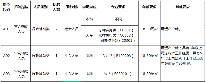 根據(jù)工作需要,清遠(yuǎn)市清城區(qū)人民法院現(xiàn)面向社會(huì)公開(kāi)招聘專(zhuān)項(xiàng)工作聘員4名。具體崗位設(shè)置如下: