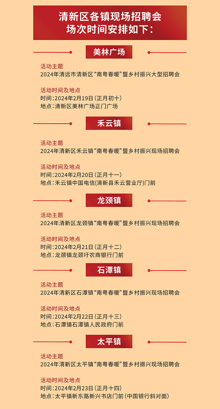 招聘會預(yù)告|2024年清遠市清新區(qū)“南粵春暖”暨鄉(xiāng)村振興大型招聘會